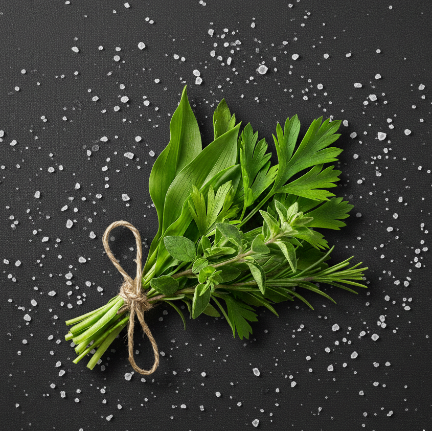 Při vaření se pak sůl rozpustí a jako neviditelný poslíček roznese tyto vůně do celého pokrmu. Bez soli by bylinka zůstala jen na povrchu, se solí se stane součástí DNA celého jídla.